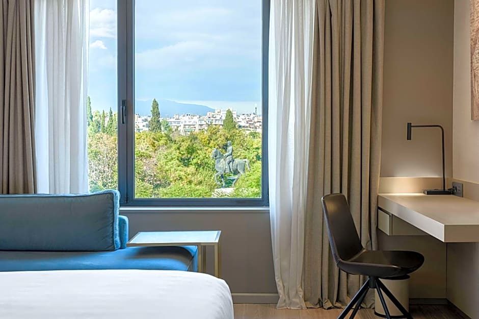 This suite is facing Acropolis and features air conditioning, bathrobe, tea/coffee maker, nespresso machine.