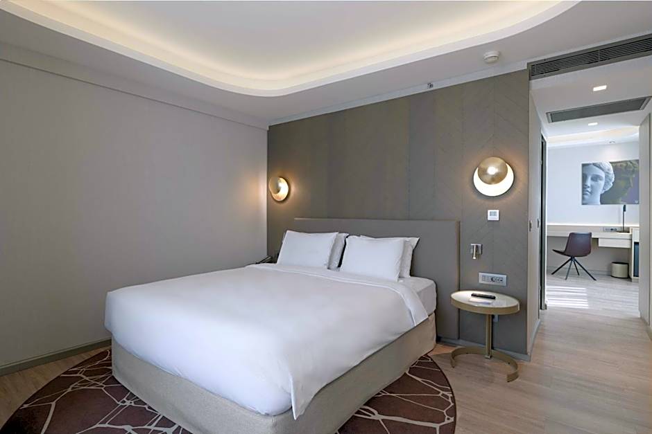 This suite is facing Acropolis and features air conditioning, bathrobe, tea/coffee maker, nespresso machine.